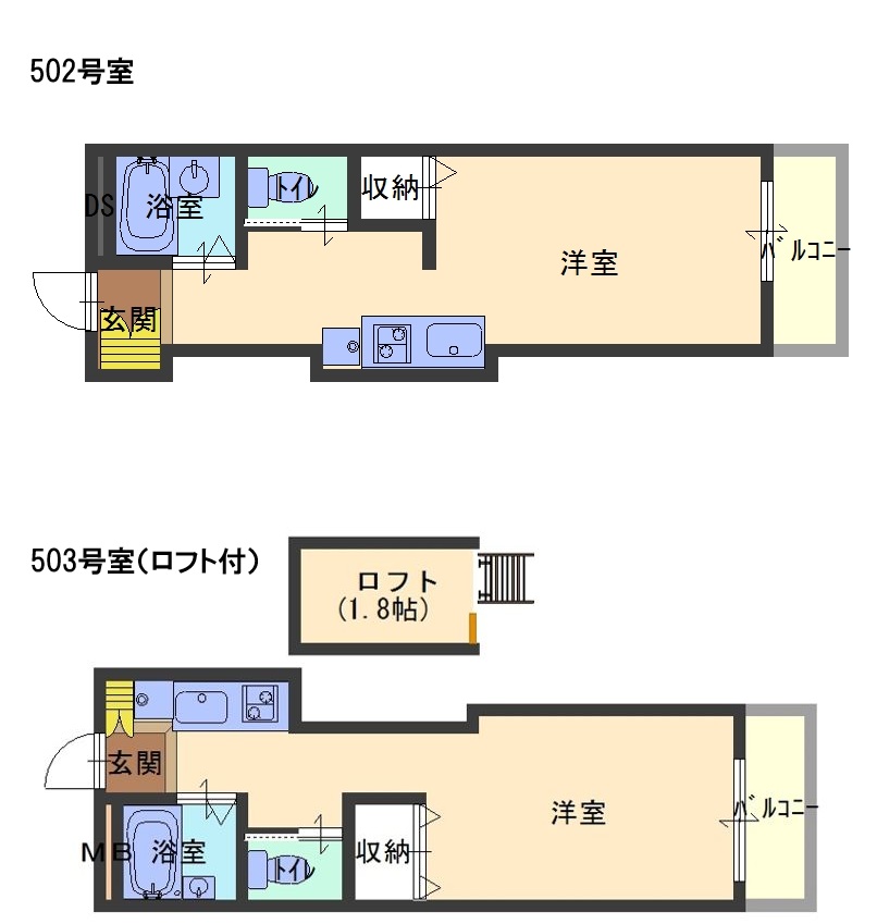 - 現況502号室空室、503号室1月末退去